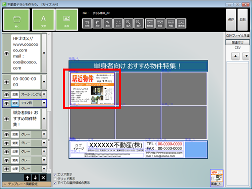 <チラシや冊子内の、1コマを作成します。>